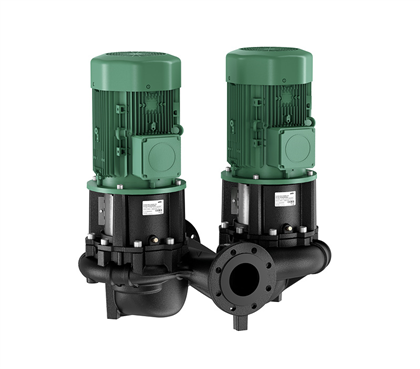 In-line twin-head pump with two single-stage glanded centrifugal pumps in the same housing with switchover valve, for pipe installation or installation on a base. Housing blind flange and mounting bracket at an additional charge. Low-oscillation and low-noise monobloc design with lantern and rigidly connected standard flange motor (standard motor). With forced-flow circulation, bidirectional bellows mechanical seal and cavitation-reducing impeller. Flanges with pressure measuring connections R 1/8. The pump housing and lantern are cataphoretic-coated.