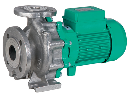 Single-stage glanded centrifugal pump in compact block design with directly flanged three-phase motor and one-piece shaft. With forced-flow circulation, bidirectional bellows mechanical seal and cavitation-reducing impeller. The pump is suitable for installation on a base.
