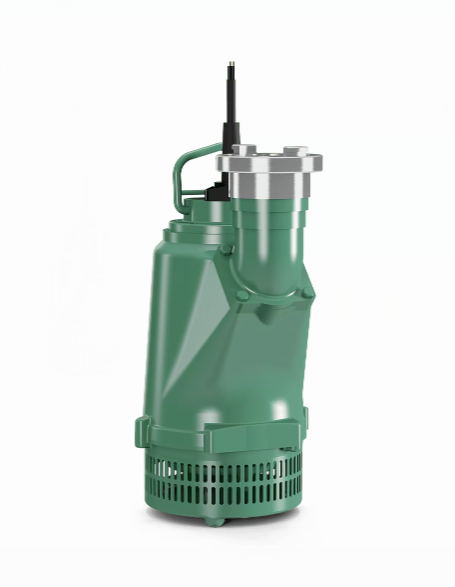 Wastewater pump as monobloc unit with submersible motor and electric connection cable. Submersible motor in pressure-resistant version, with internal sealed active cooling. The unit is filled with medicinal white oil. The motor seal on the shaft employs two bidirectional wear-resistant mechanical seals. Both seals are cooled and lubricated with medical white oil. The motor compartment is equipped with a terminal board. Two maintenance-free ball bearings are used for storage. Retrofit option of sealing chamber monitoring with pencil electrode for protection against penetrating moisture. The motor components are made of aluminium and the pump components of grey cast iron. Shaft and connection elements are made of stainless steel. The motor is suitable for continuous duty (S1) under full load in immersed and completely non-immersed state.