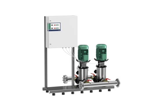 Pressure-boosting system to be connected indirectly and fully automatic double pump compact unit as homogeneous redundant version of a single-pump system for fire extinguishing applications.