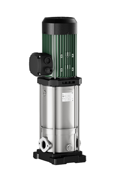 The pump has a compact design with a continuous motor pump shaft and a bidirectional mechanical seal. Stage chambers, impellers, guide vanes and pump housing are made of stainless steel. Pump baseplate is made of cataphoretic-coated cast iron with oval flange connections.