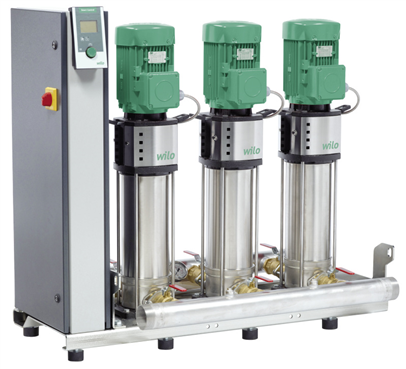 Compact pressure boosting system according to DIN 1988 and DIN EN 806, for direct or indirect connection. Consisting of non self-priming, switched in parallel, vertically-mounted stainless steel high-pressure multistage centrifugal pumps in glanded versions. Ready for connection with stainless steel pipework, mounted on a base frame, including control device with all necessary measurement and adjustment equipment.